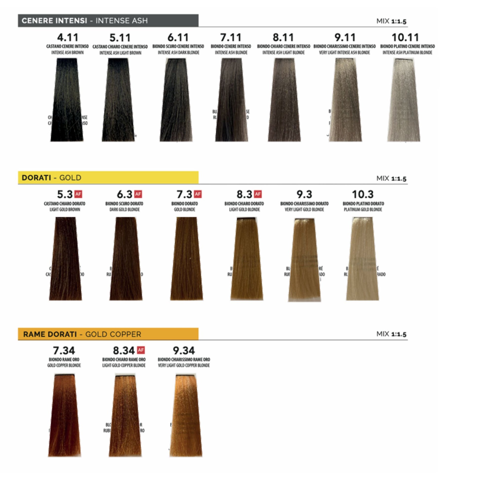 Total blond sajaukšanas attiecība: 1 daļa krāsas + 2,5 daļas 40 Vol. oksidētāja (piemēram, 60 ml krāsas + 150 ml oksidētāja).
